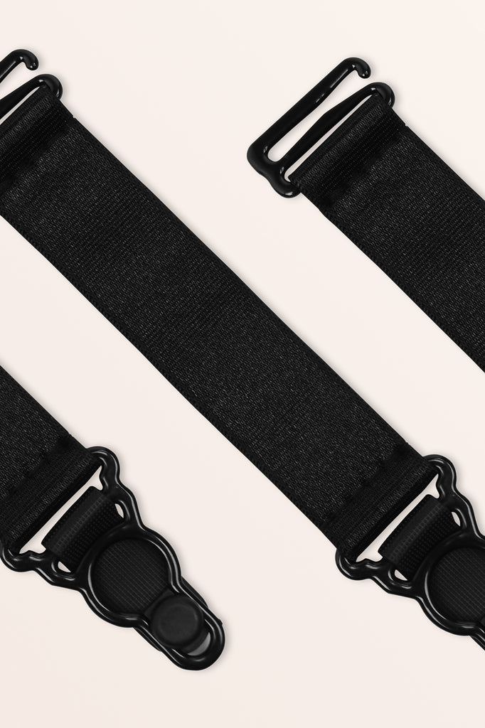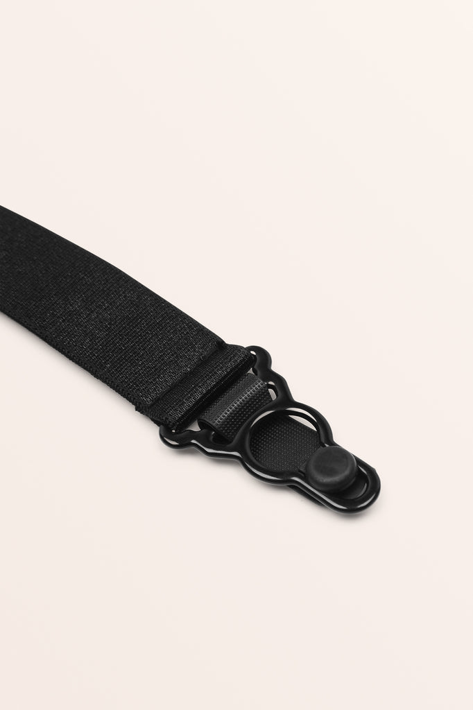 Introducing the Fixed Metallic Wide Suspender Clip for when you need a firm hold. Made of stretchy elastic and featuring strong durable metal clips, you can easily attach and adjust these to fit your suspenders, panties, stockings, and more.