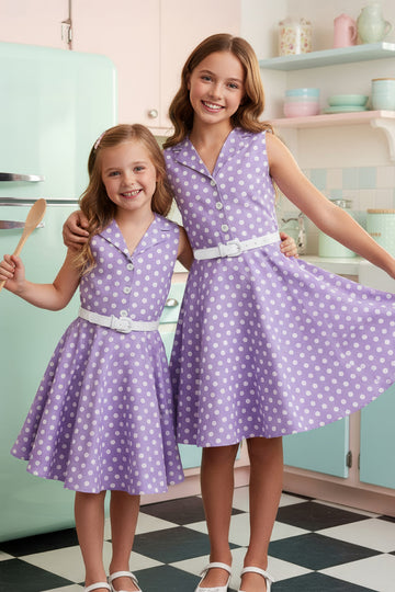 Dieses wunderschöne ärmellose Kleid im Vintage-Tupfen-Stil ist für junge Damen erhältlich! Das Kleid hat einen Kragenausschnitt mit geknöpfter Vorderseite und einen ausgestellten Tellerrock. Das Kleid hat einen seitlichen Reißverschluss und einen weißen PU-Taillengürtel. Darüber hinaus ist die Innenseite dieses Kleidungsstücks vollständig gefüttert, was Ihnen zusätzlichen Komfort bietet, ohne den Look zu beeinträchtigen.