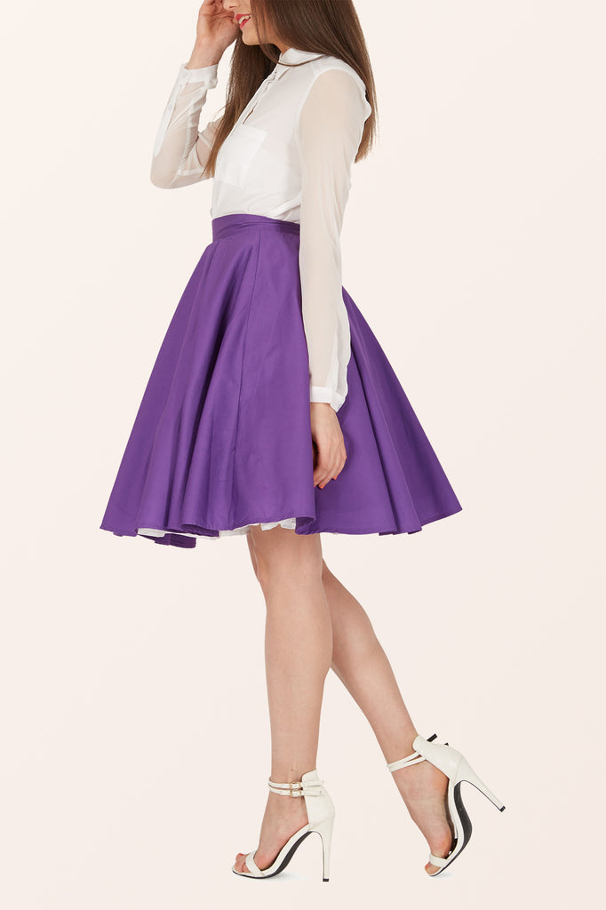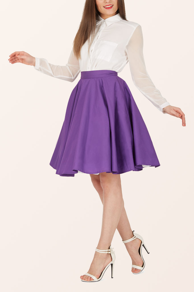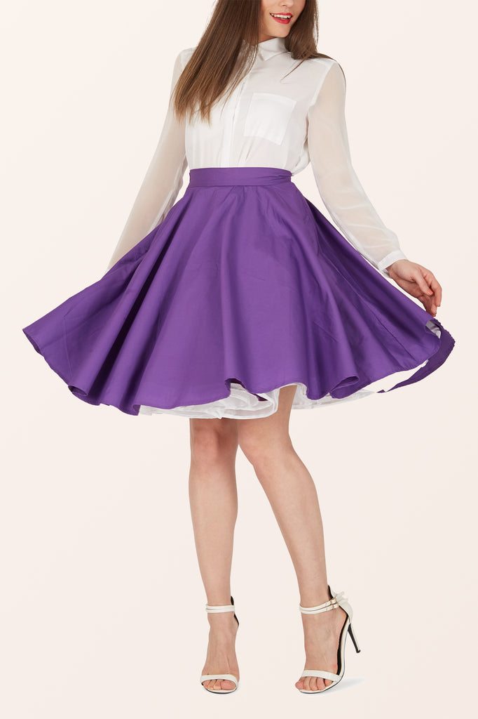 Dieser Rockabilly Swingrock wurde direkt von Vintage-Mustern aus den 50er Jahren inspiriert. Dieser ausgestellte Tellerrock hat einen seitlichen Knopfverschluss, einen diskreten Reißverschluss und ist innen vollständig gefüttert, ohne den Look zu beeinträchtigen. Dieser Rock im 50er-Jahre-Stil ist die perfekte Ergänzung für den Retro-Look.