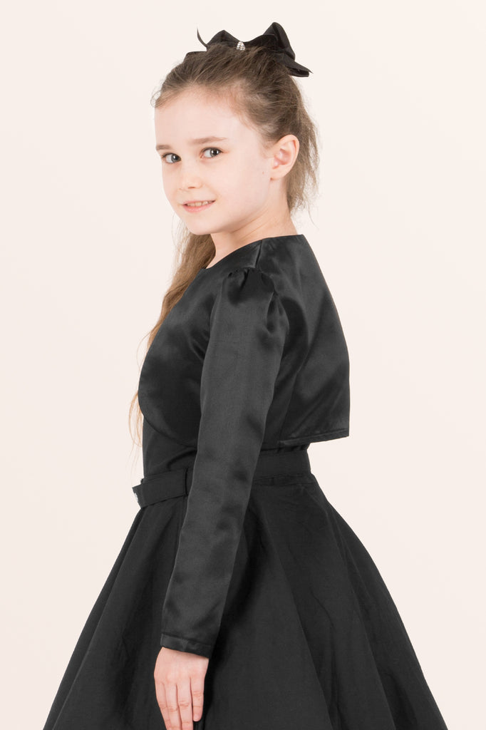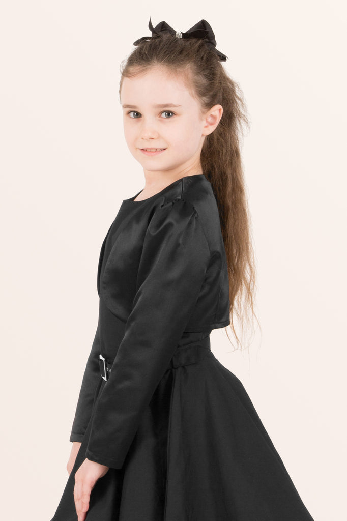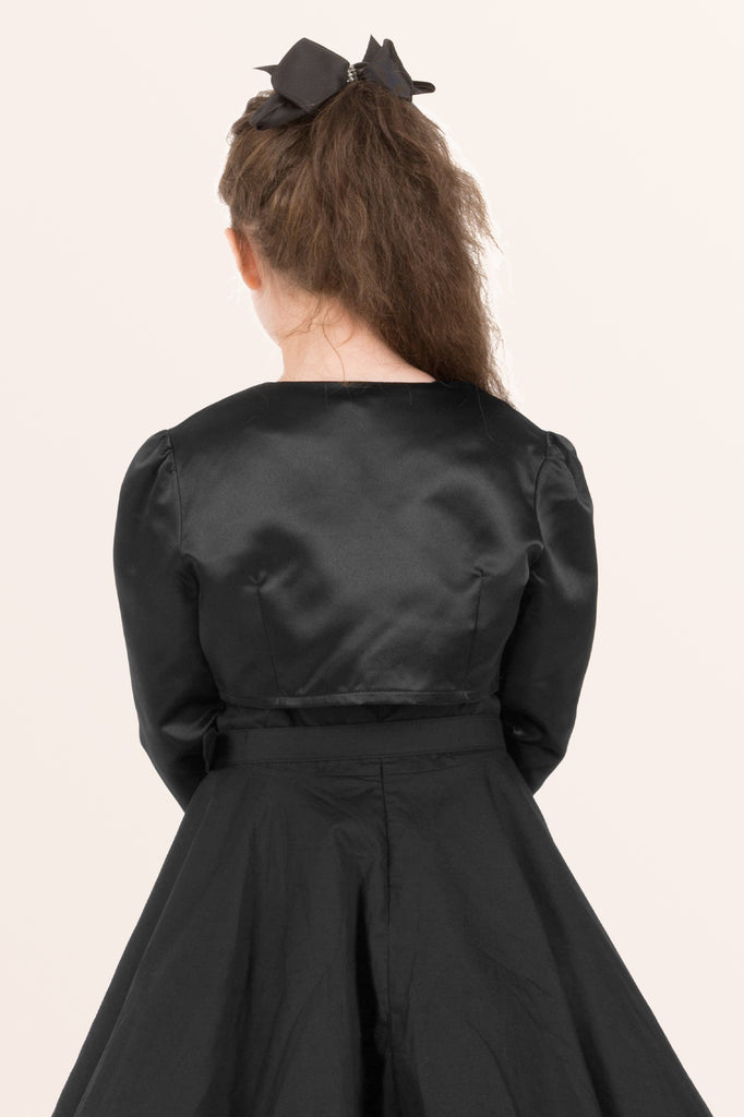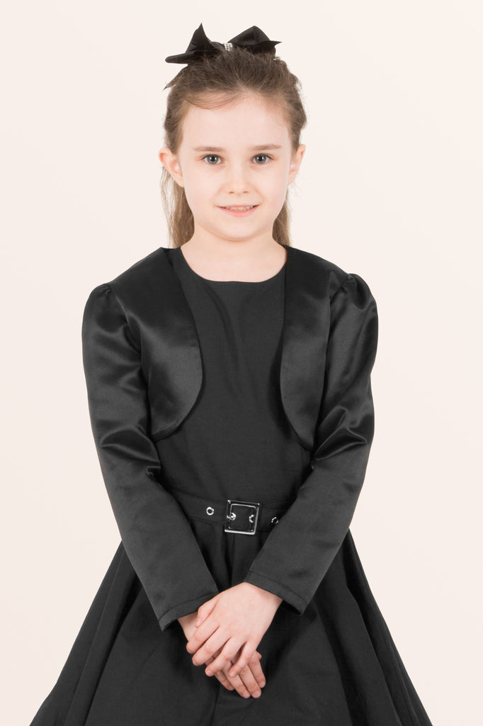 Complete the vintage look with our gorgeous girls’ long sleeve bolero. Made from soft, gentle satin, the jacket adds that extra sparkle to any occasion whilst still giving you a little extra warmth with its spacious long sleeves. This bolero is specifically designed to complement our girls dress range and our matching women’s range. Perfect for bridesmaids, weddings, parties, and special evenings!