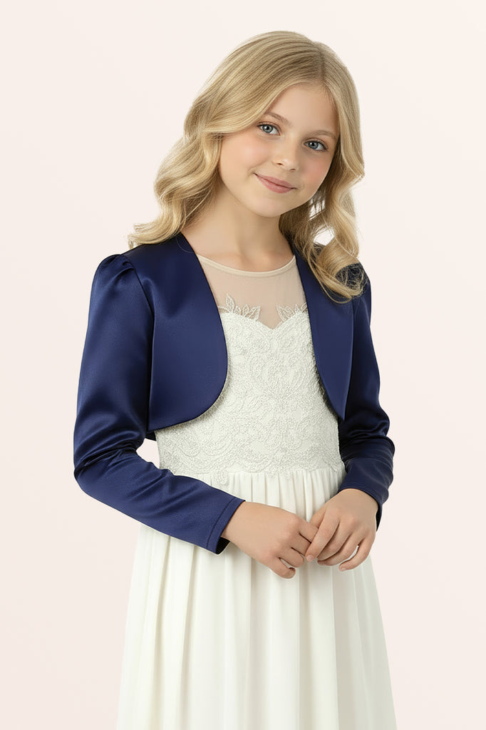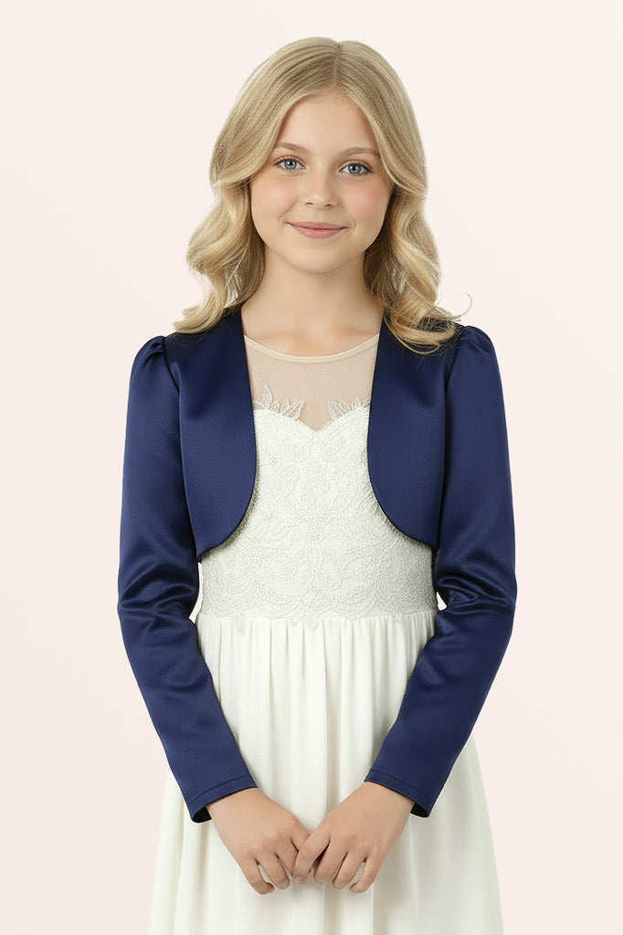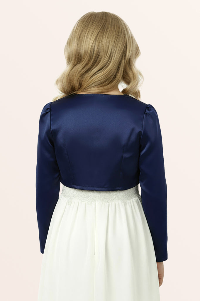 Complete the vintage look with our gorgeous girls’ long sleeve bolero. Made from soft, gentle satin, the jacket adds that extra sparkle to any occasion whilst still giving you a little extra warmth with its spacious long sleeves. This bolero is specifically designed to complement our girls dress range and our matching women’s range. Perfect for bridesmaids, weddings, parties, and special evenings!