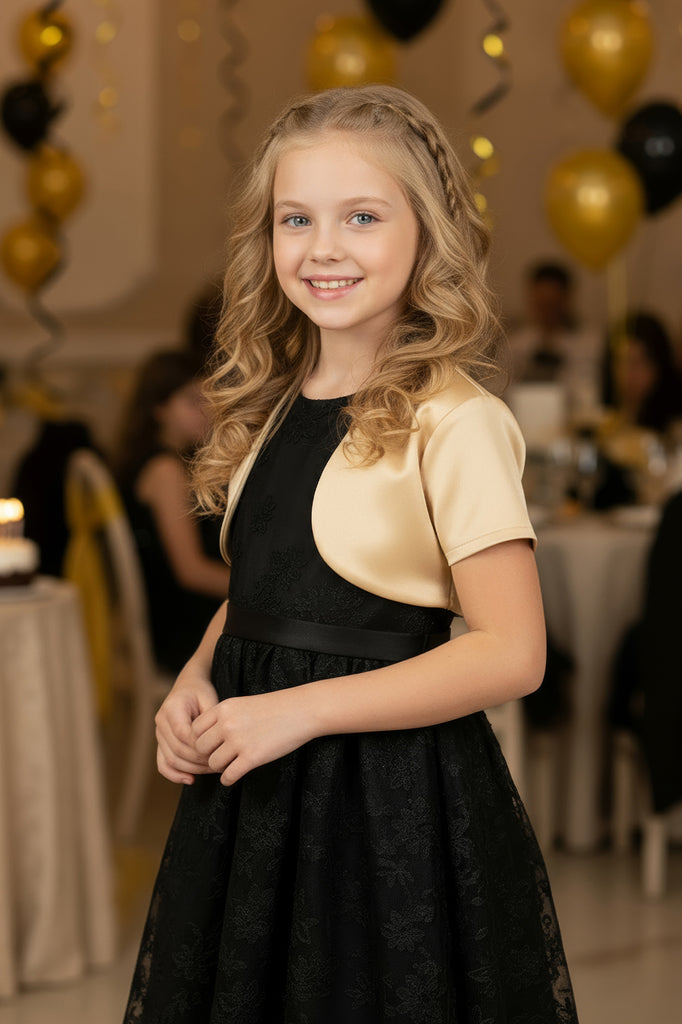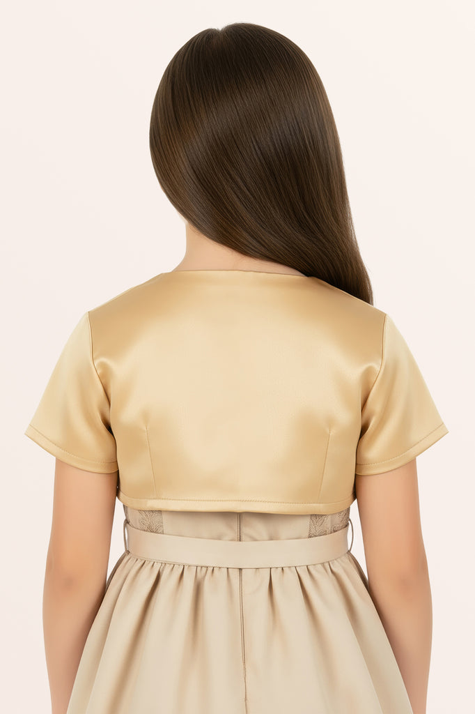 Our fabulous girls’ short sleeve bolero will finish any vintage outfit stunningly. Made from gentle satin, the jacket adds that extra sparkle to a special occasion. This bolero is specifically designed to complement our girls dress range and our matching women’s range. Perfect for all bridesmaids, weddings, parties, and smart evenings!