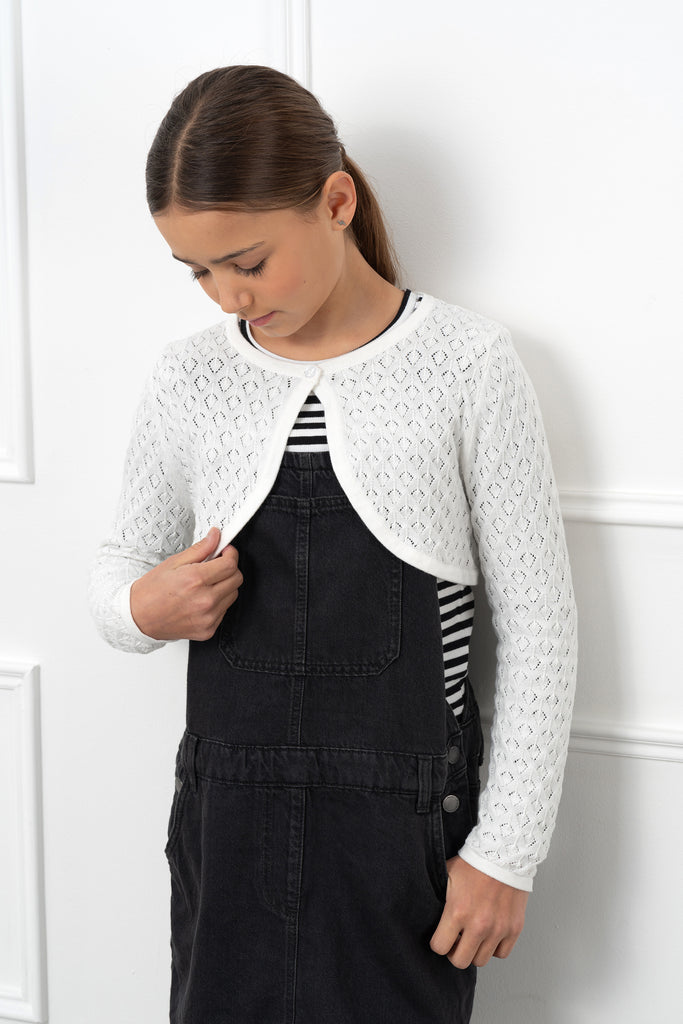 Looking to add that little extra bit of elegance to their wardrobe? Look no further! This fabulous knit bolero will do exactly that. This cute little shrug is suitable for all occasions from casual evenings to formal occasions especially with its tailored style.
