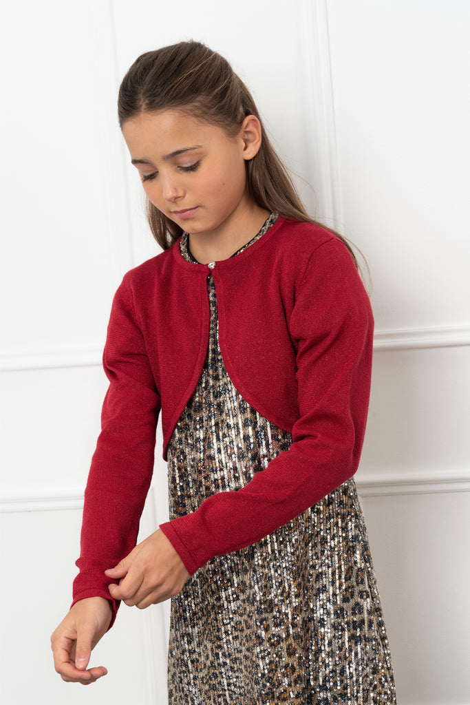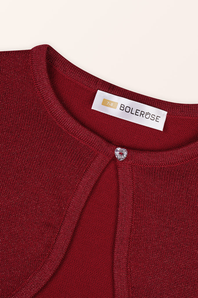 Add a little sparkle to their outfit with this stunning long sleeve bolero. The material of this shrug is intertwined with a beautiful yet subtle glittery thread making it feel that extra bit special. The bolero is also finished with a cute diamante heart-shaped button fastening at the neckline. Perfect for all types of occasions including bridesmaids at weddings, parties, and special evenings!