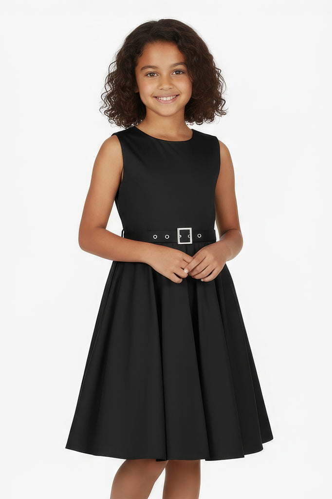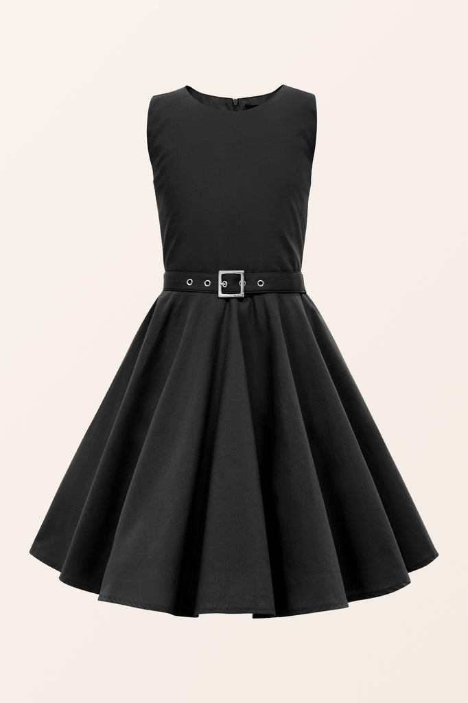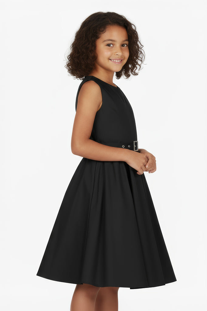 This popular Audrey Hepburn inspired dress is now available for girls! Following it's older sister, the dress features a full circle flared skirt, back zipper and a matching waist belt for an authentic 1950's vintage look. In addition, the inside of this garment is fully lined giving that extra comfort without compromising the look.