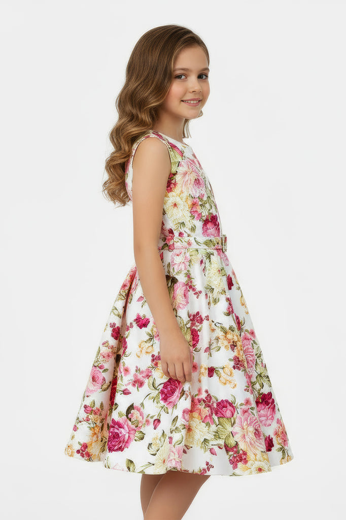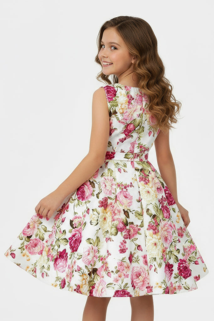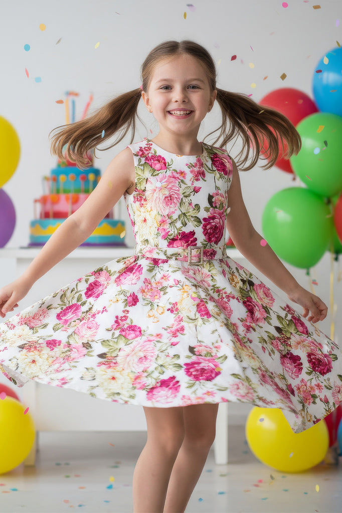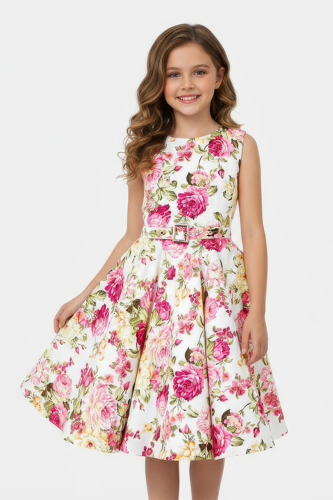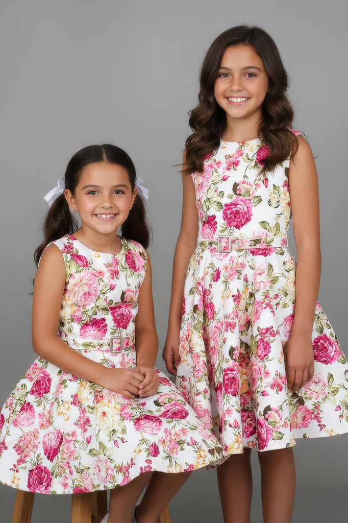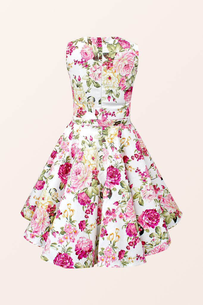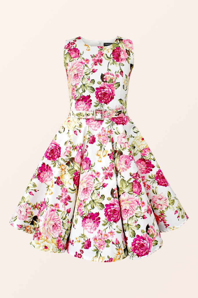 Introducing our first ever edition to the BlackButterfly Kids range. This popular floral Audrey Hepburn inspired dress is now available for girls! Following it's older sister, the dress features a full circle flared skirt, back zipper and a matching waist belt for an authentic 1950's vintage look. In addition, the inside of this garment is fully lined giving you that extra comfort without compromising the look.