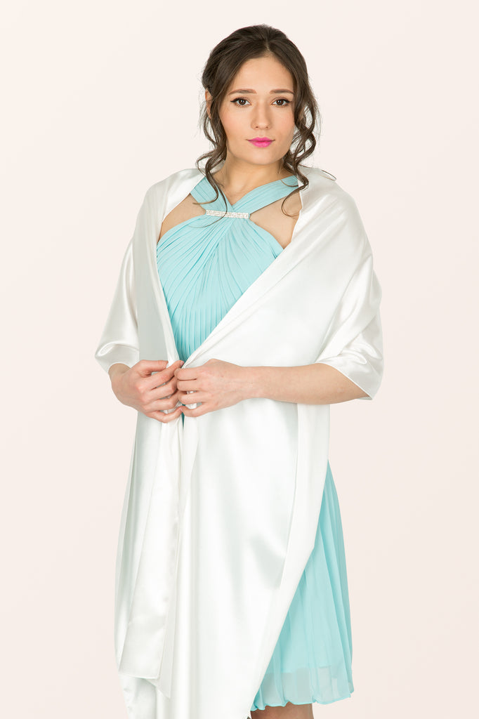 Several dresses we sell at BlackButterfly are much more complete with one of our very own elegant shawl wraps! This particular wrap is made from a lovely satin finished polyester material - an essential accompaniment with many of our prom/bridesmaid dresses. The dimension of the shawl is approximately 19 inches x 95 inches.