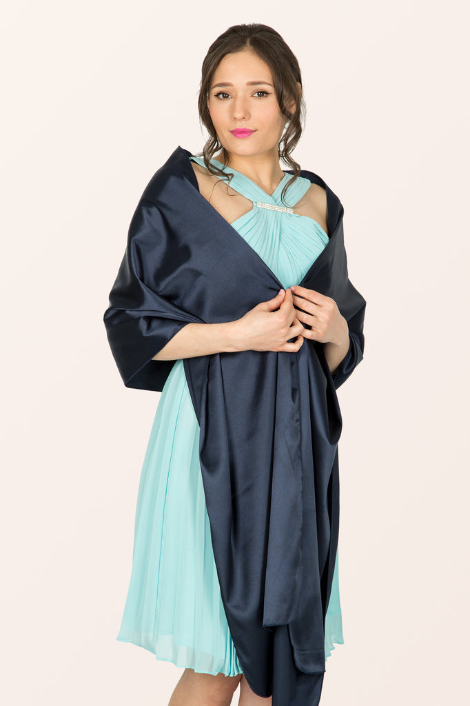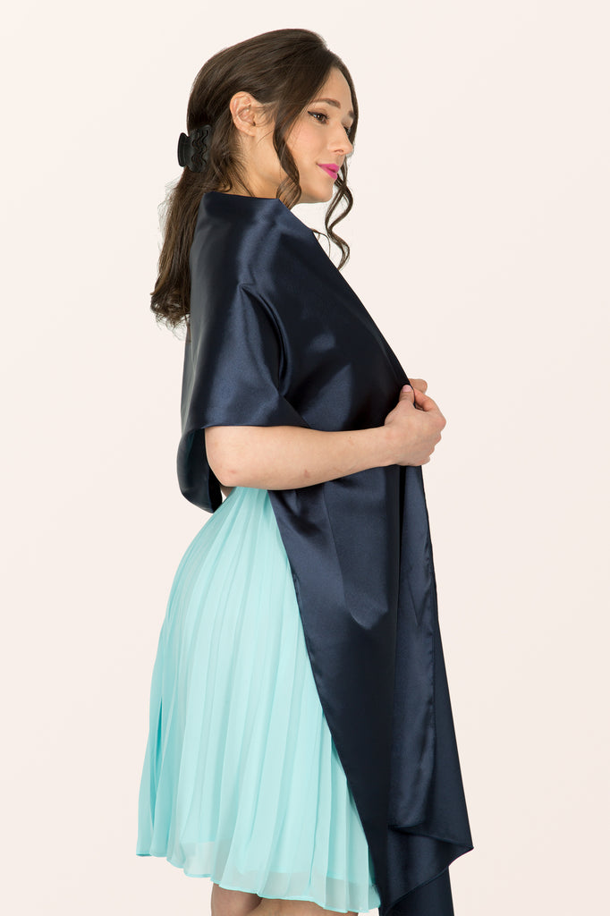Several dresses we sell at BlackButterfly are much more complete with one of our very own elegant shawl wraps! This particular wrap is made from a lovely satin finished polyester material - an essential accompaniment with many of our prom/bridesmaid dresses. The dimension of the shawl is approximately 19 inches x 95 inches.