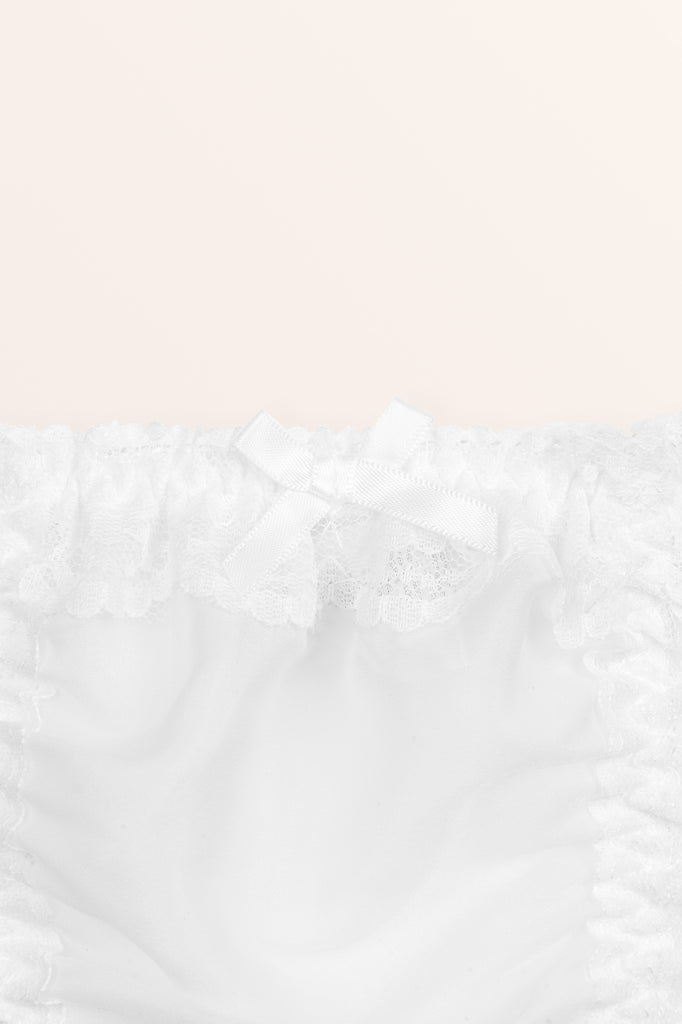 The delicate lace frills and bow motif with fabric rose emblem at the center of the knickers adds a touch of elegance and femininity, making them perfect for special occasions such as honeymoon nights, valentine’s, date nights, lingerie parties, and more.