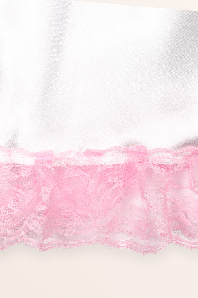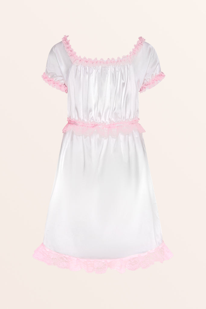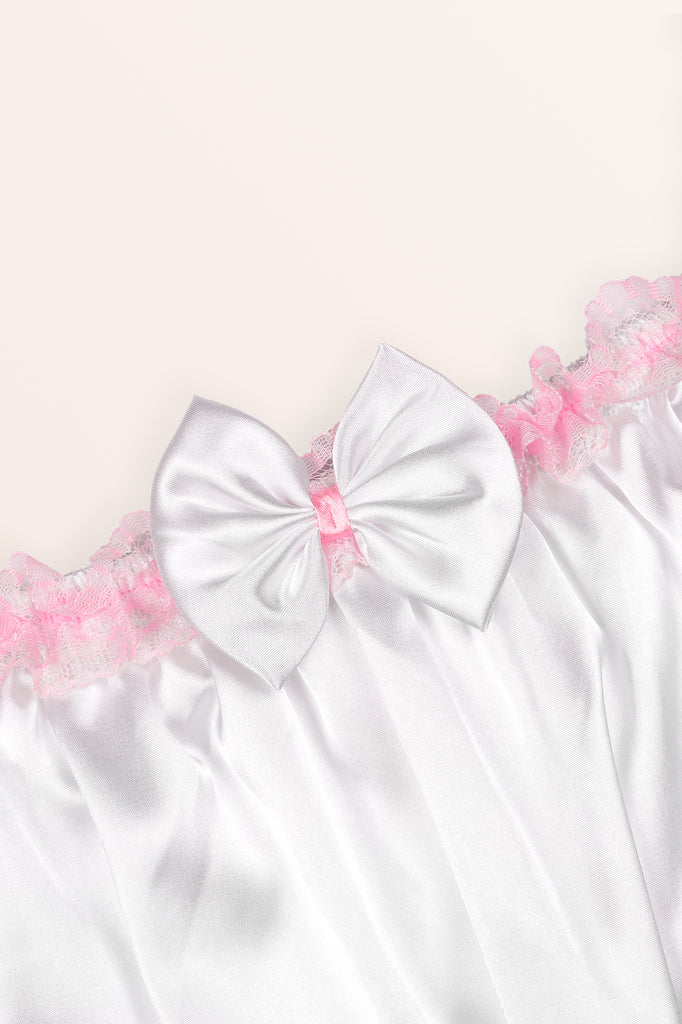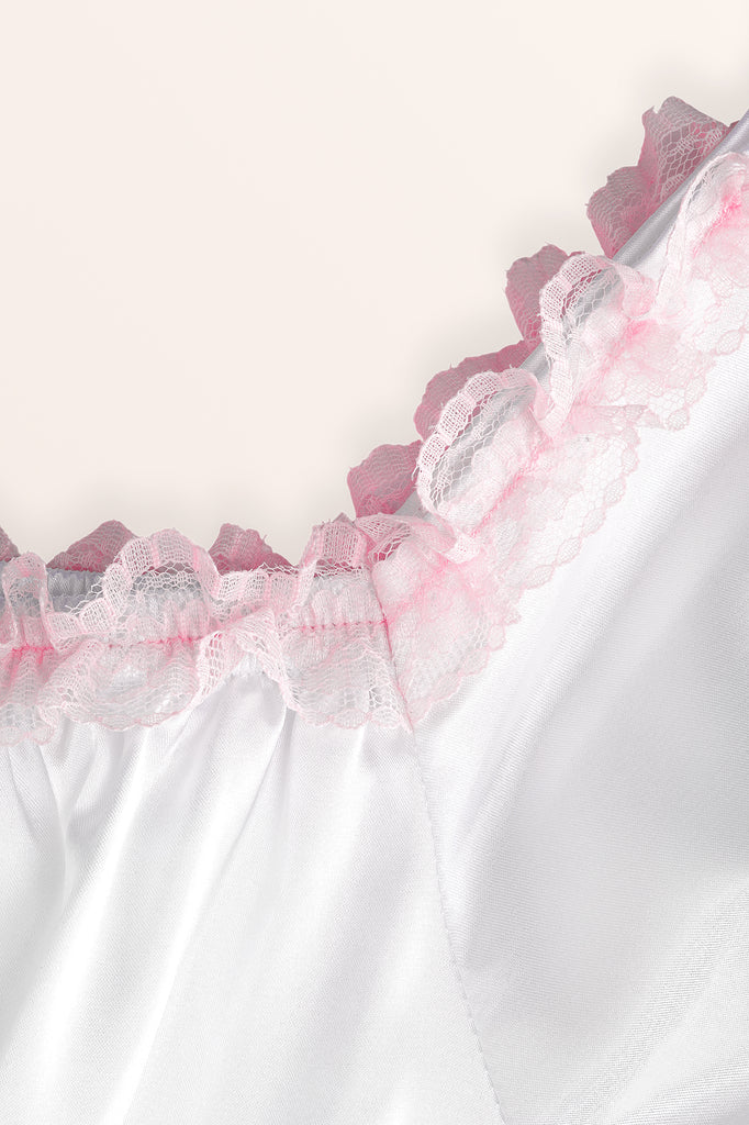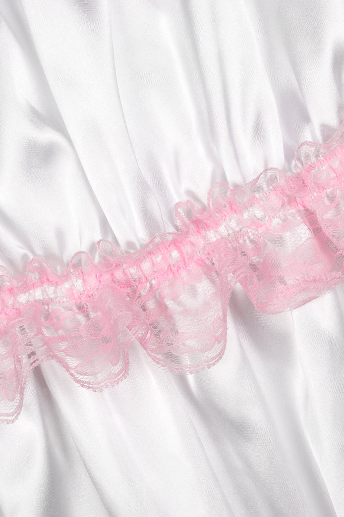 This nightdress combines luxurious satin fabric with delicate lace accents, creating a sophisticated and alluring lingerie piece. Its flirty, feminine maid-inspired design adds a playful and romantic vibe to your night-time routine. Elasticated details at the neckline, arm openings, and waistband ensure a comfortable, customizable fit that adapts to your body shape. Made from lightweight materials, this nightdress offers all-night comfort, allowing you to relax and unwind in style.