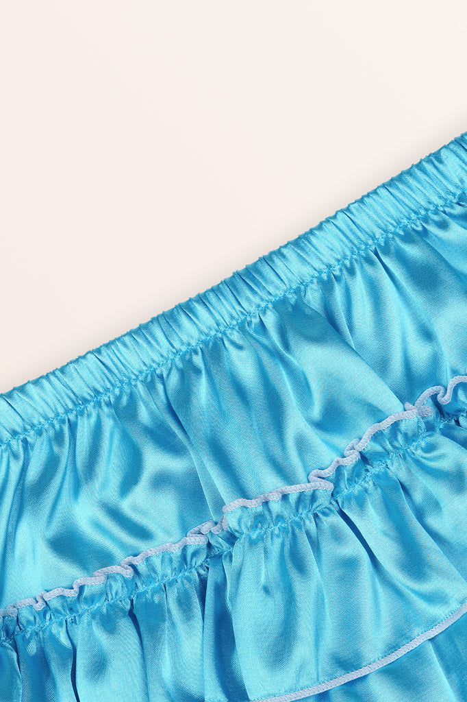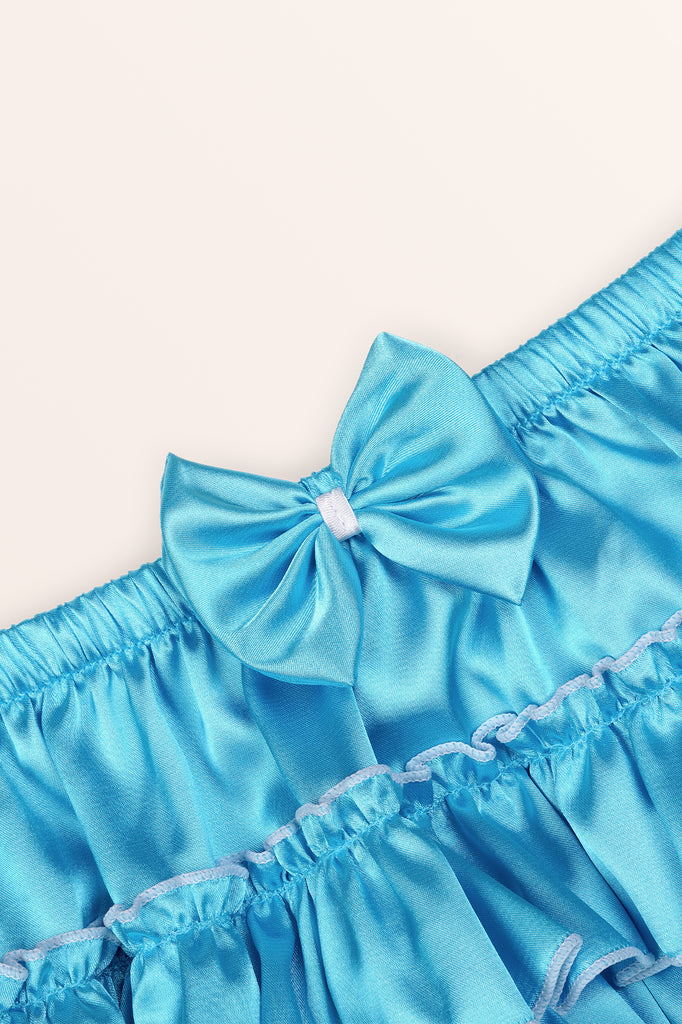 Fashioned from luxurious satin fabric, these skirted panties boast delicate ruffled details and an elasticated waist for supreme comfort. Offering a smooth and silky feel against the skin, they exude luxury. Adorned with a charming bow detail at the waist, these panties radiate a sweet and romantic vibe, elevating your lingerie collection.