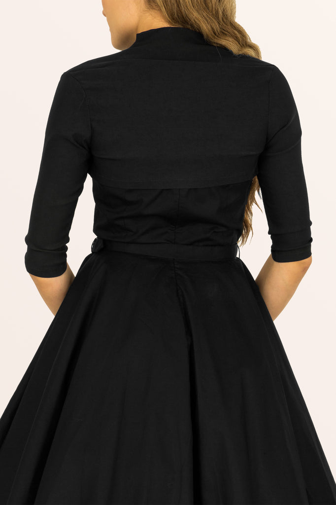 Looking to add that little extra bit of elegance to your wardrobe? Look no further! This fabulous tailored 3/4 sleeve bolero will do exactly that. Specially designed to complement our range of vintage inspired prom dresses, this cute little shrug is suitable for all occasions from casual evenings to formal occasions especially with its tailored style.