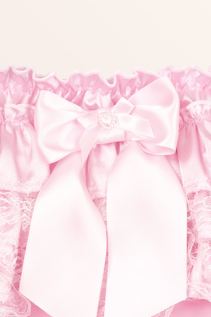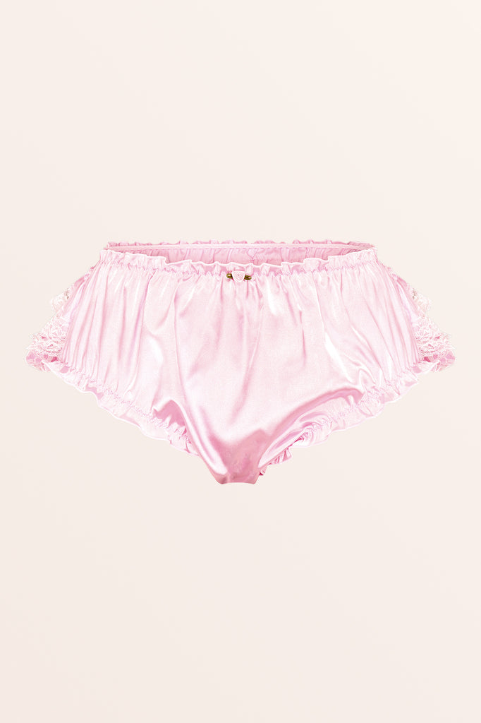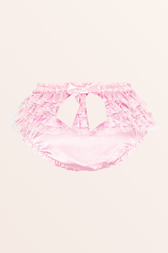 Indulge in elegance with our Sissy Satin Ruffled Lace Panties, crafted from silky soft satin that catches the light with a lustrous sheen for a luxurious touch. Designed with dainty details like a charming bow at the waist, these panties bring a sweet and romantic vibe to your lingerie collection. The ruffled design adds beautiful volume, while the shimmering lace edge completes the look with a hint of sophistication and femininity, making this piece a perfect blend of comfort and style.