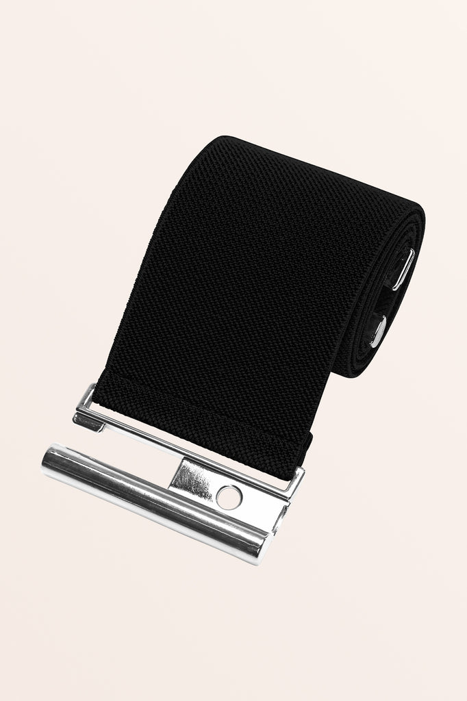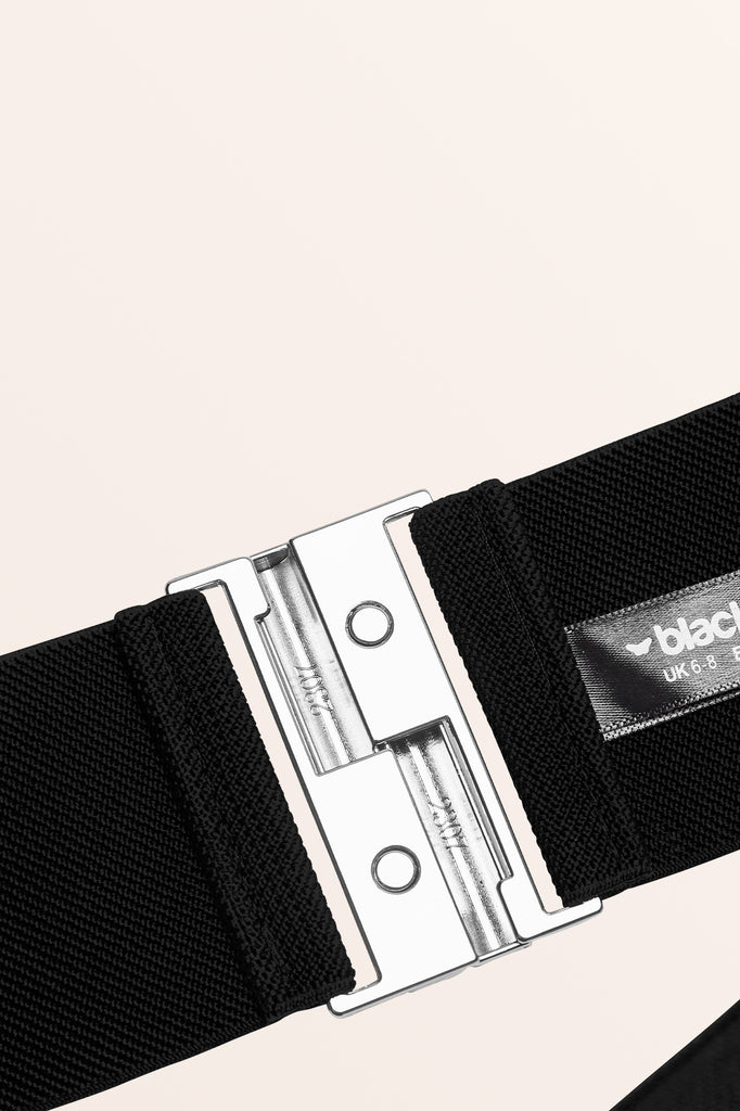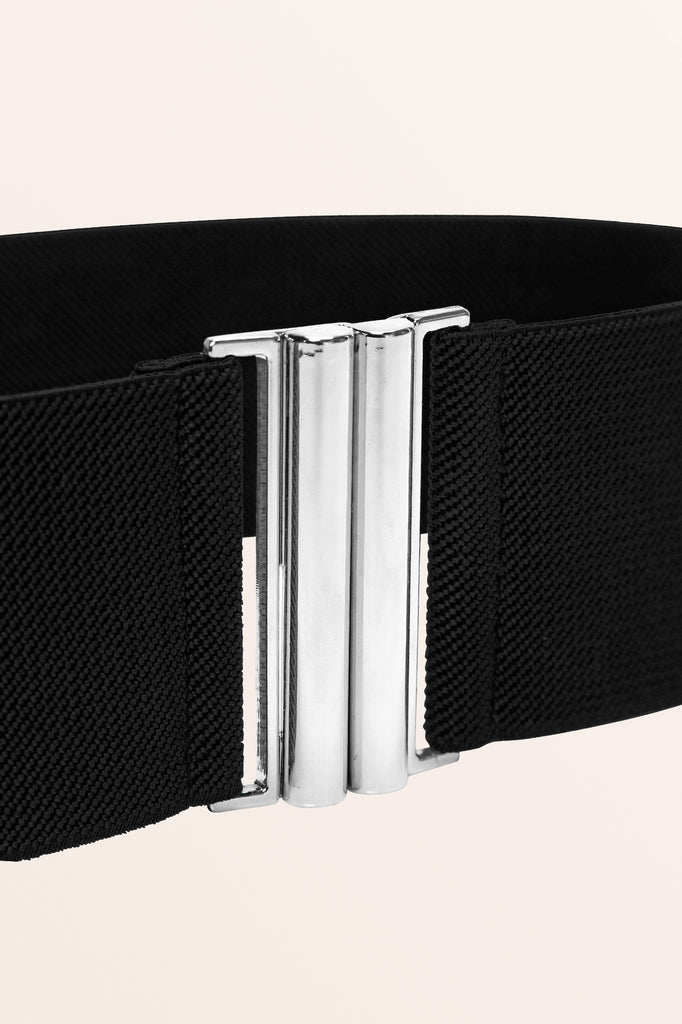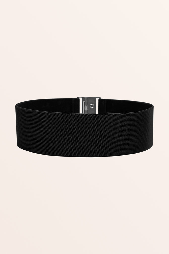 Un cinturón retro de 2,5 pulgadas de ancho con una hebilla entrelazada duradera. Como el material es elástico, se ajustará a muchos tamaños variados. El cinturón es elástico continuo en todo su perímetro.