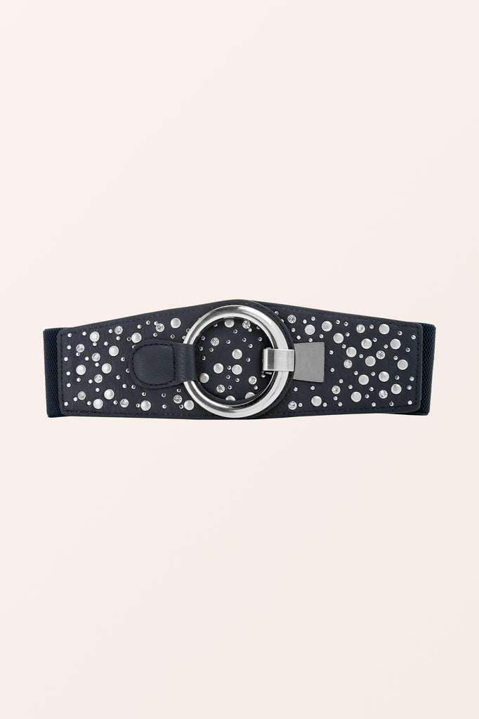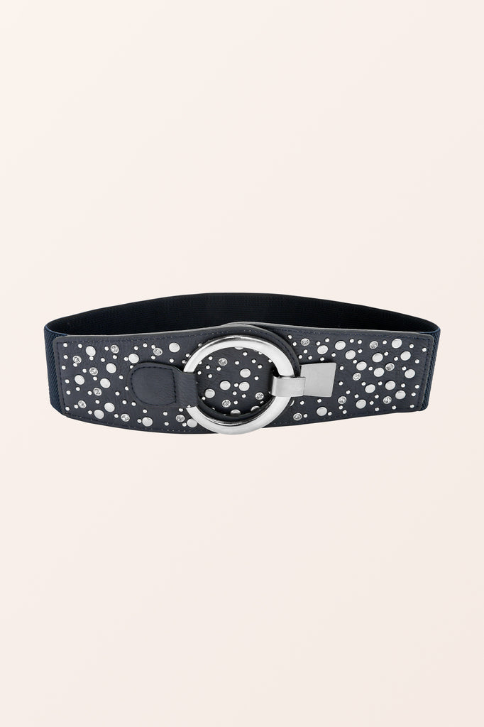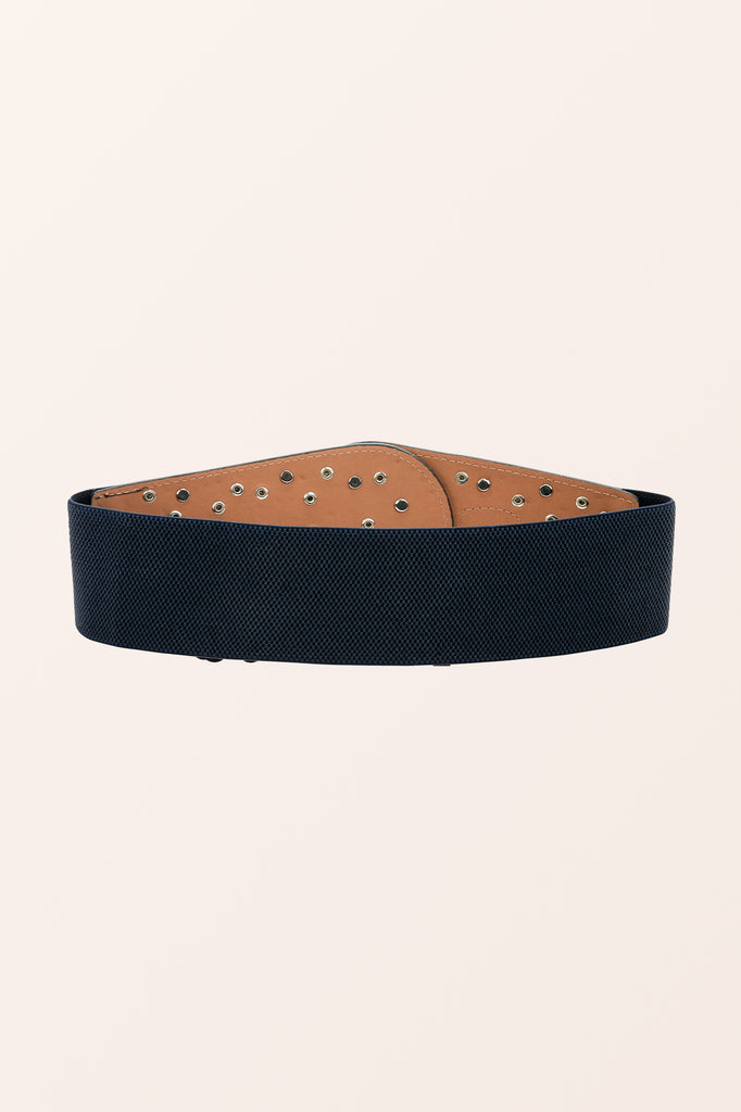 Une large ceinture corset de style rétro avec une grande fermeture à crochet métallique décorative qui peut être ajustée pour incliner la ceinture dans différentes positions ! Comme l'arrière de la ceinture est élastique, elle s'ajuste à une variété de tailles.