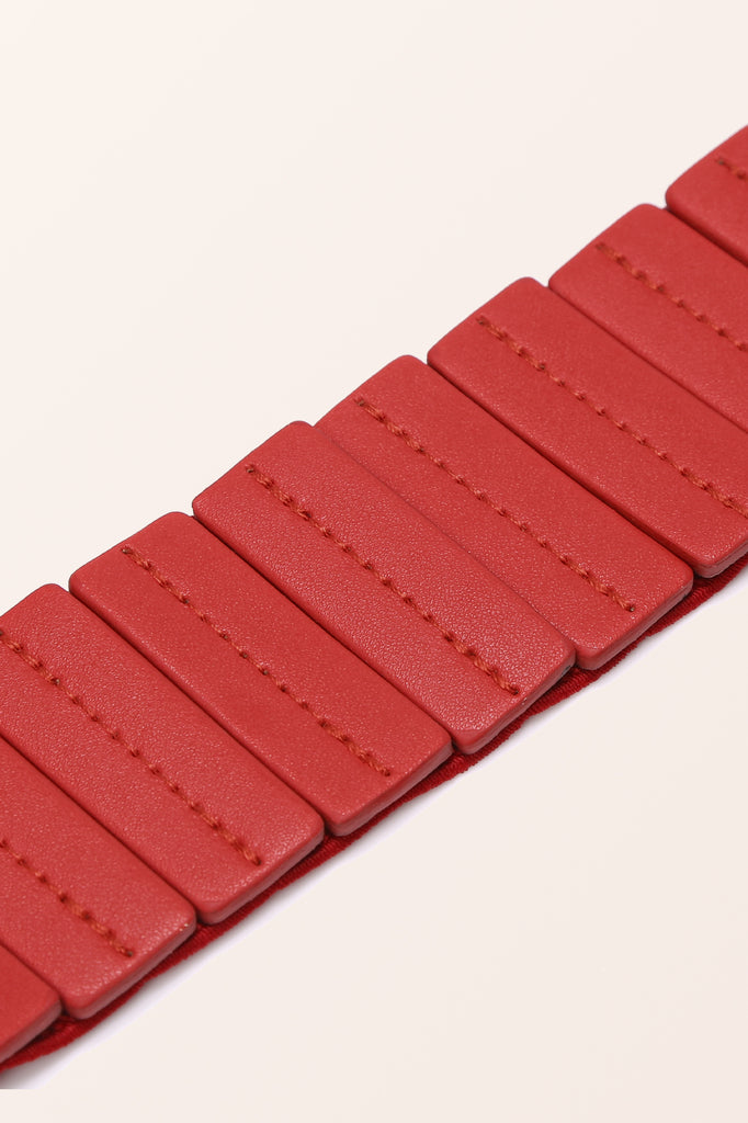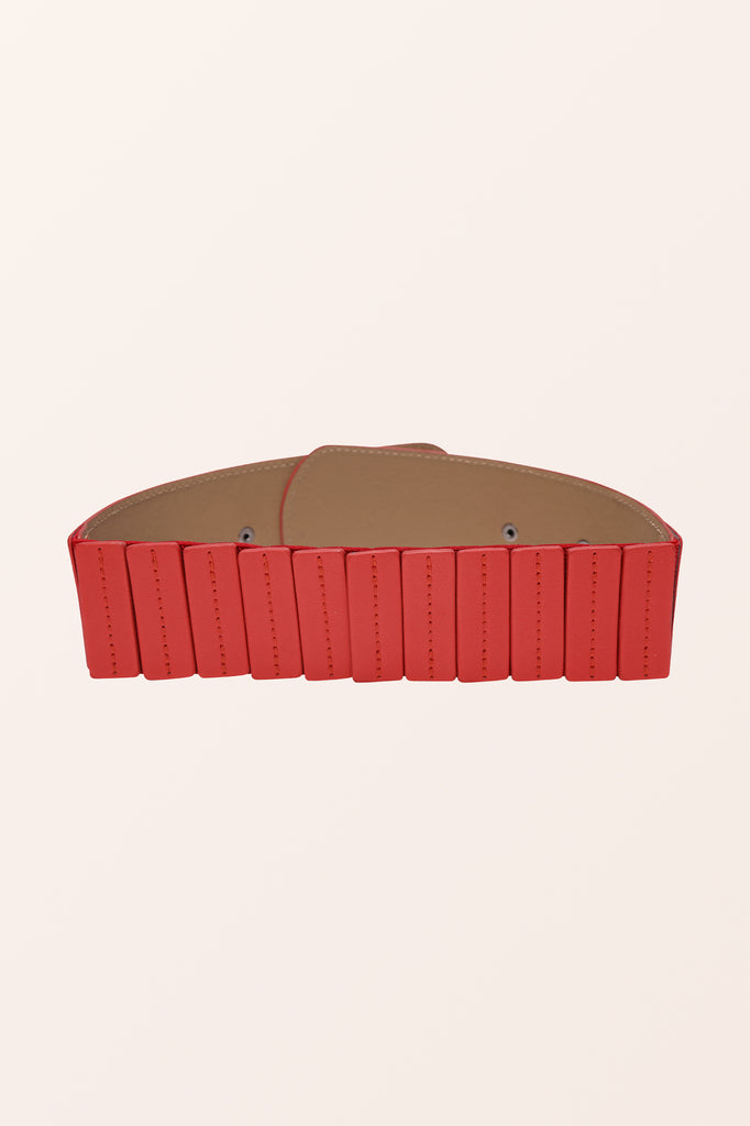 Une large ceinture corset rétro avec une grande fermeture à crochet métallique décorative qui peut être ajustée pour incliner la ceinture dans différentes positions ! Comme l'arrière de la ceinture est élastique, elle s'ajuste à une variété de tailles.