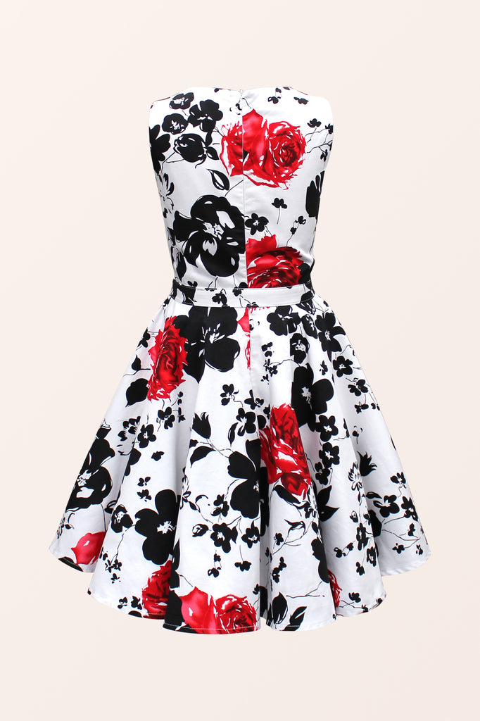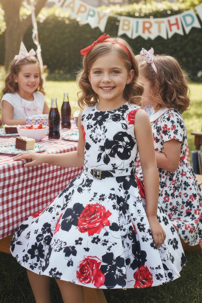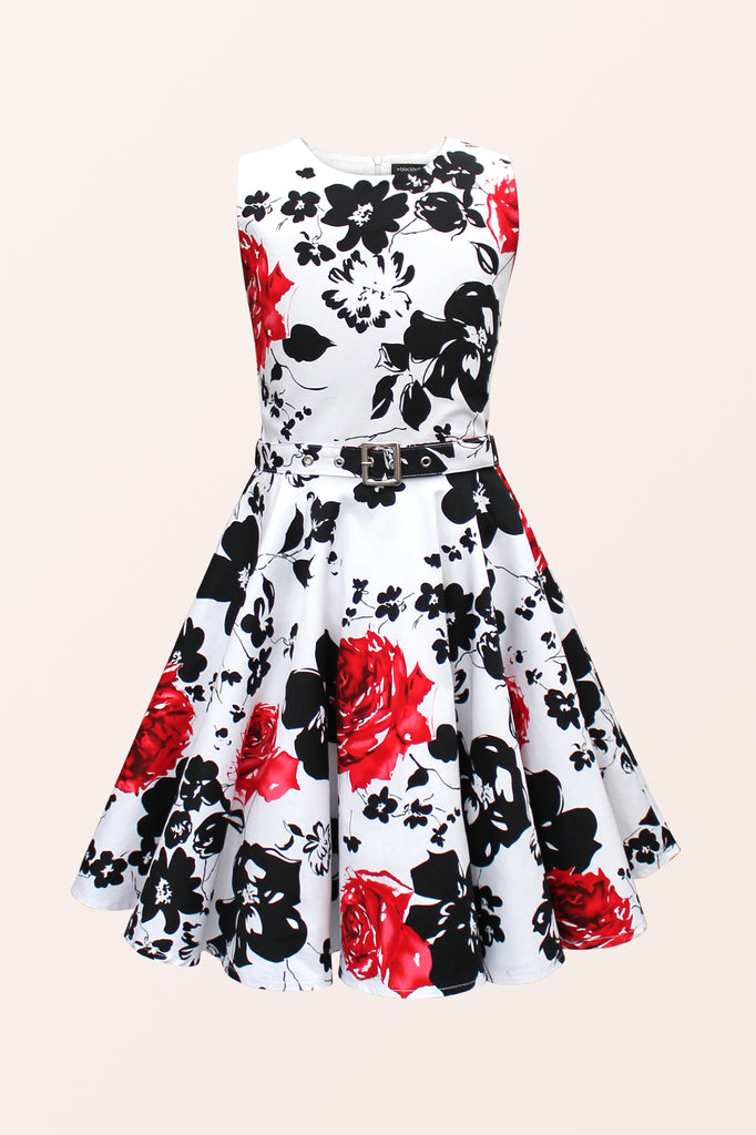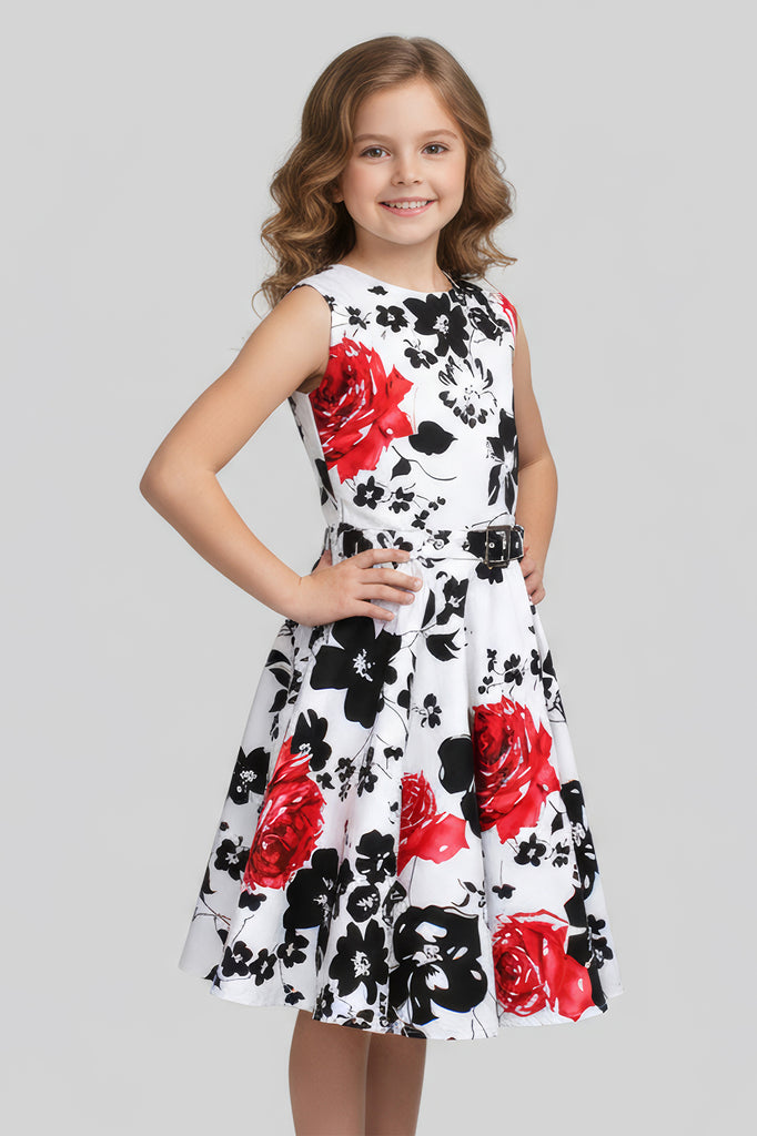 Cette robe fleurie très appréciée inspirée d'Audrey Hepburn est désormais disponible pour les filles ! Suivant sa grande sœur, la robe est dotée d'une jupe évasée en cercle, d'une fermeture éclair au dos et d'une ceinture assortie à la taille pour un look vintage authentique des années 1950. De plus, l'intérieur de ce vêtement est entièrement doublé, ce qui vous offre un confort supplémentaire sans compromettre le look.