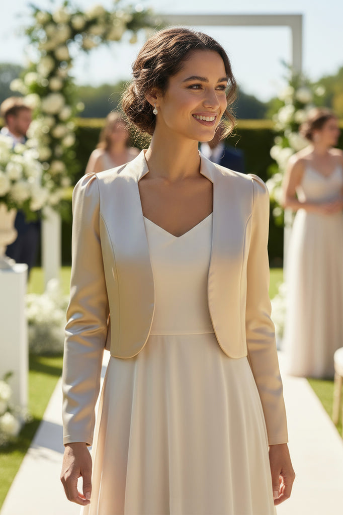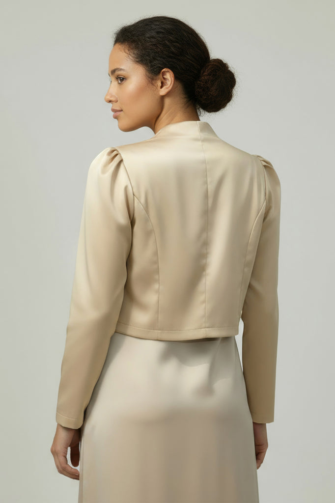 Stai cercando di aggiungere quel tocco di eleganza in più al tuo guardaroba con questa favolosa giacca bolero su misura a maniche lunghe. Questo coprispalle è adatto a tutte le occasioni, dalle serate informali alle occasioni formali, soprattutto grazie al suo stile sartoriale.