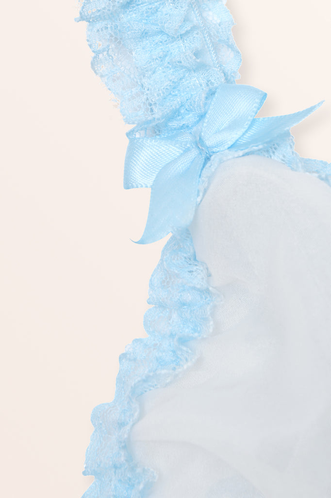 Zie er sexy uit en voel je in deze doorzichtige kanten bralette met ruches. Delicaat vervaardigd met doorzichtige stof voor een intieme uitstraling. Pronk met het trio van satijnen rozen op de schouderbanden en twee rozenstrikken op de zoom. Deze veelzijdige lingerie is ontworpen voor elk geslacht en is perfect voor speciale gelegenheden. Durf risico's te nemen in stijl.