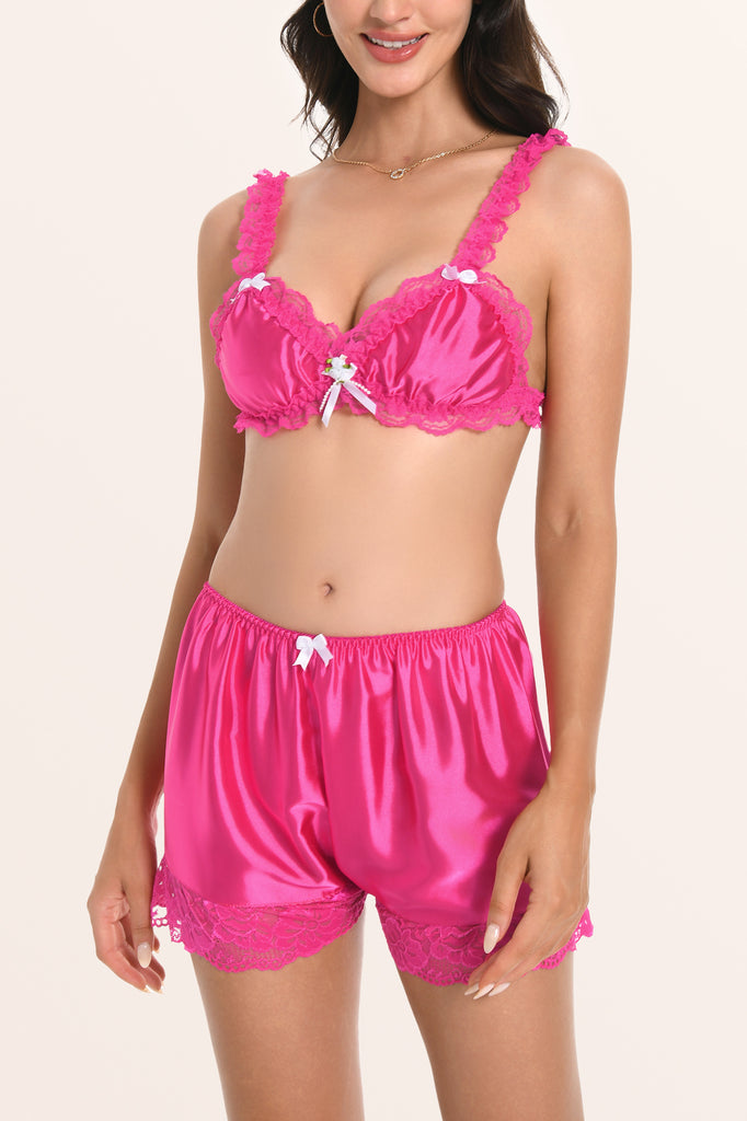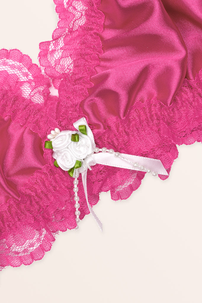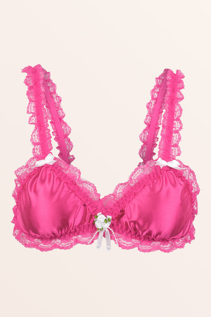Omarm je vrouwelijkheid in deze prachtige bralette. Gemaakt van delicate satijnen stof en elastische bandjes voor comfort de hele dag door, met een drietal romantische rozen en een reeks nepparels genesteld in het decolleté, allemaal geaccentueerd met sierlijke schouderstrikken en een ruchesrand. Geniet van de elegantie.