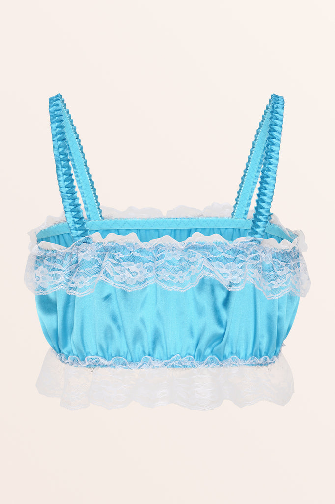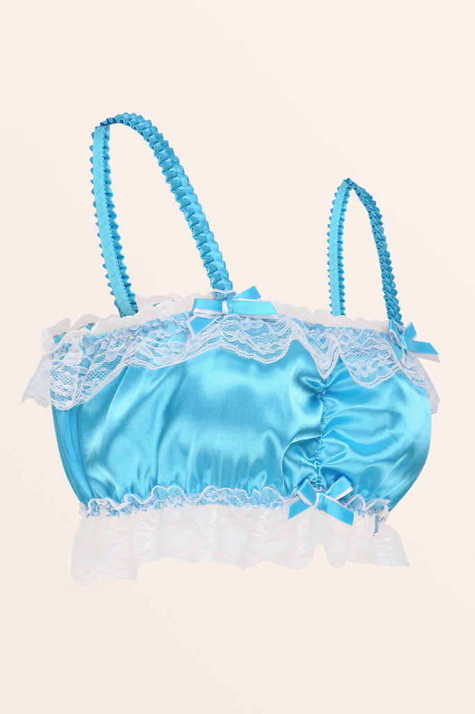 Maak je klaar om je chique en flirterig te voelen in deze bralette! Onze delicate satijnen stof, kanten rand met ruches en draadloze spaghettibandjes zorgen voor een luxe en comfortabele pasvorm. De satijnen afwerking en het elegante kant voegen een vleugje vrouwelijkheid toe aan je outfit. Deze bralette is de perfecte combinatie van comfort en stijl.