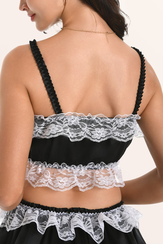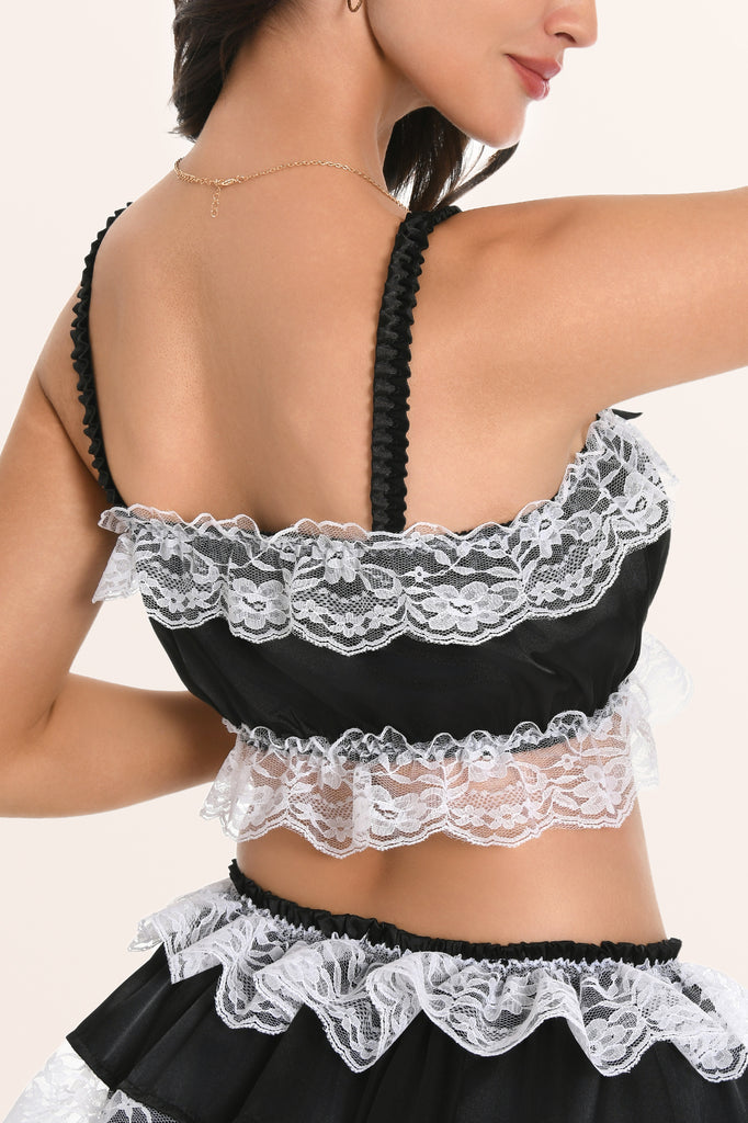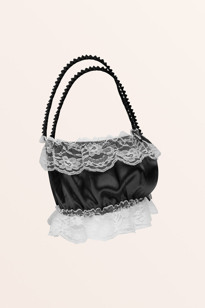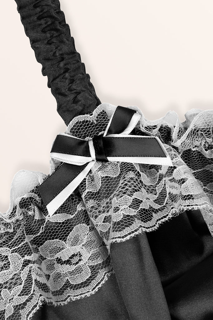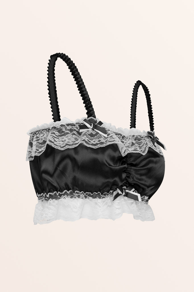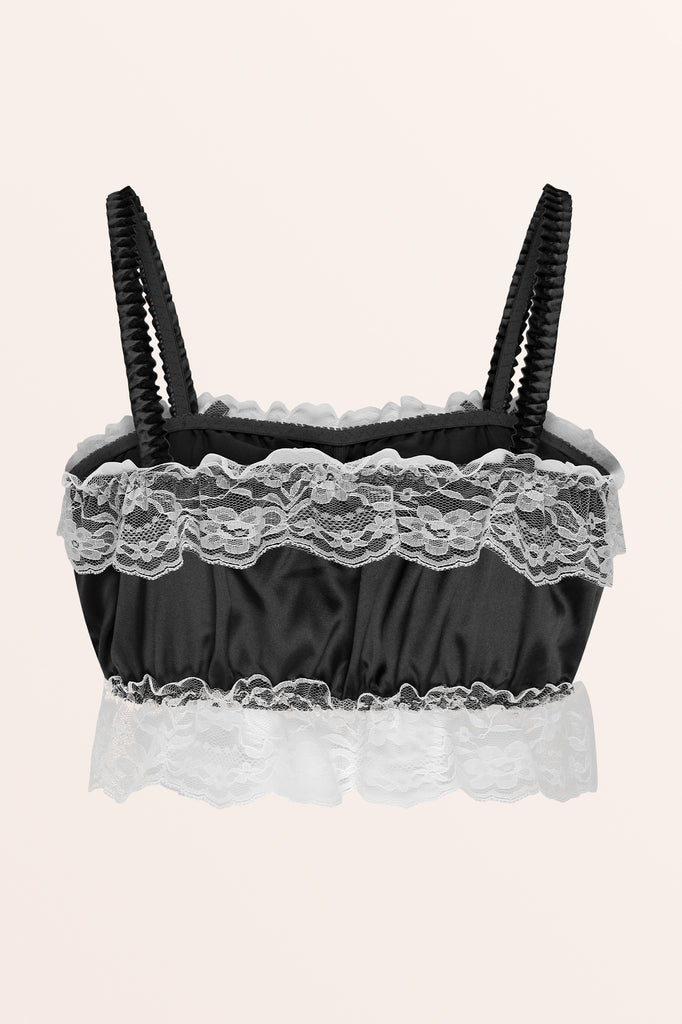 Maak je klaar om je chique en flirterig te voelen in deze bralette! Onze delicate satijnen stof, kanten rand met ruches en draadloze spaghettibandjes zorgen voor een luxe en comfortabele pasvorm. De satijnen afwerking en het elegante kant voegen een vleugje vrouwelijkheid toe aan je outfit. Deze bralette is de perfecte combinatie van comfort en stijl.