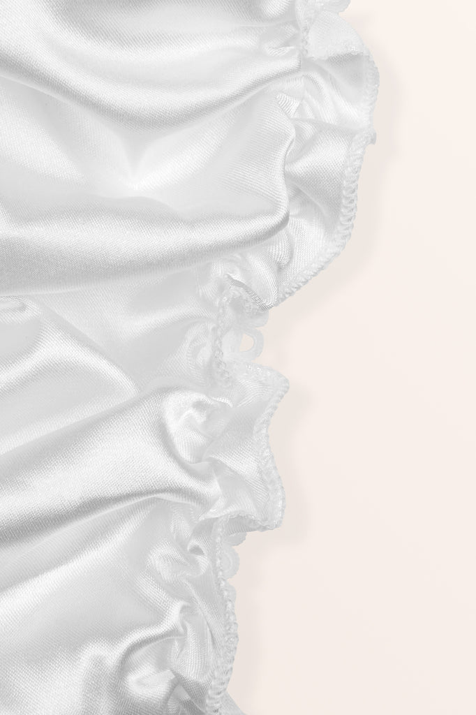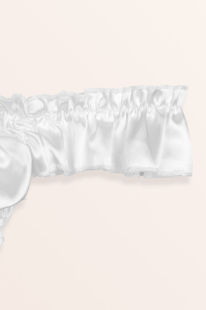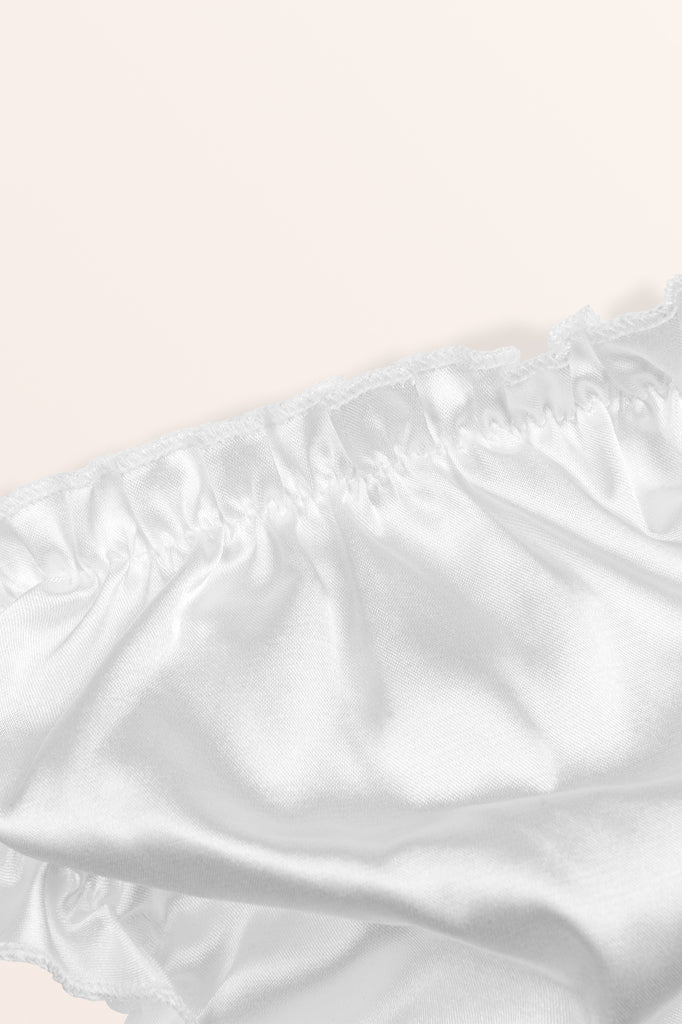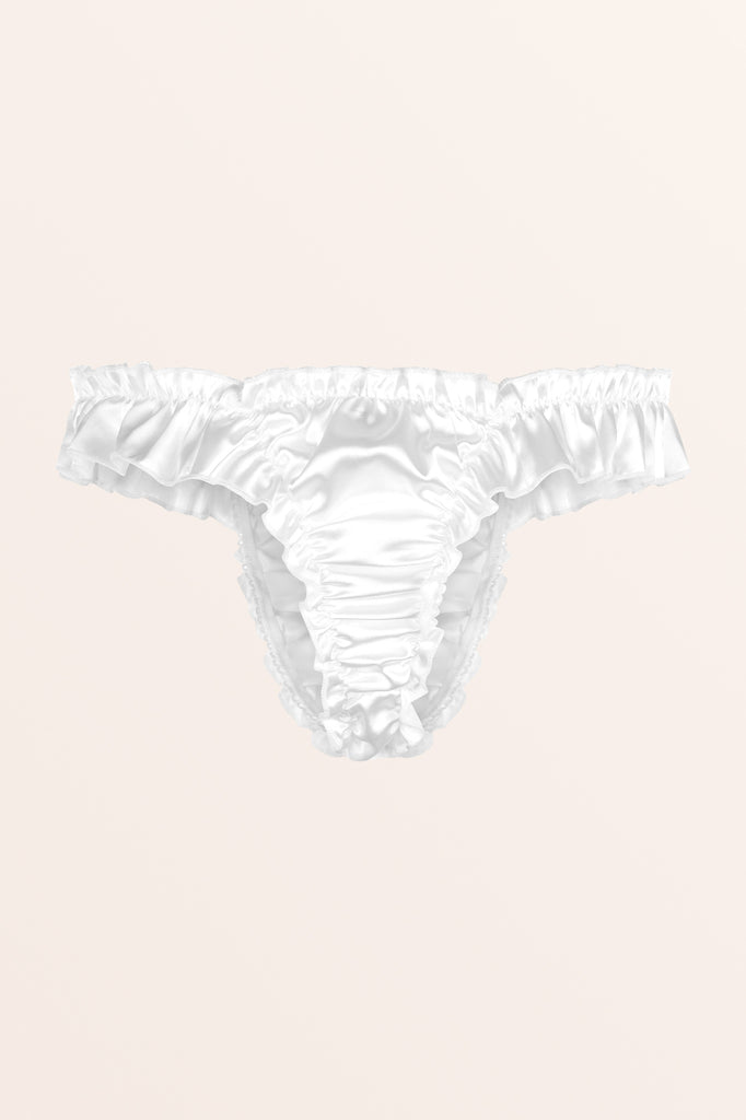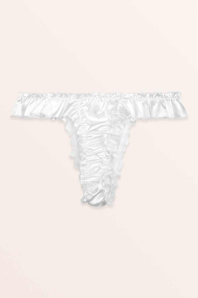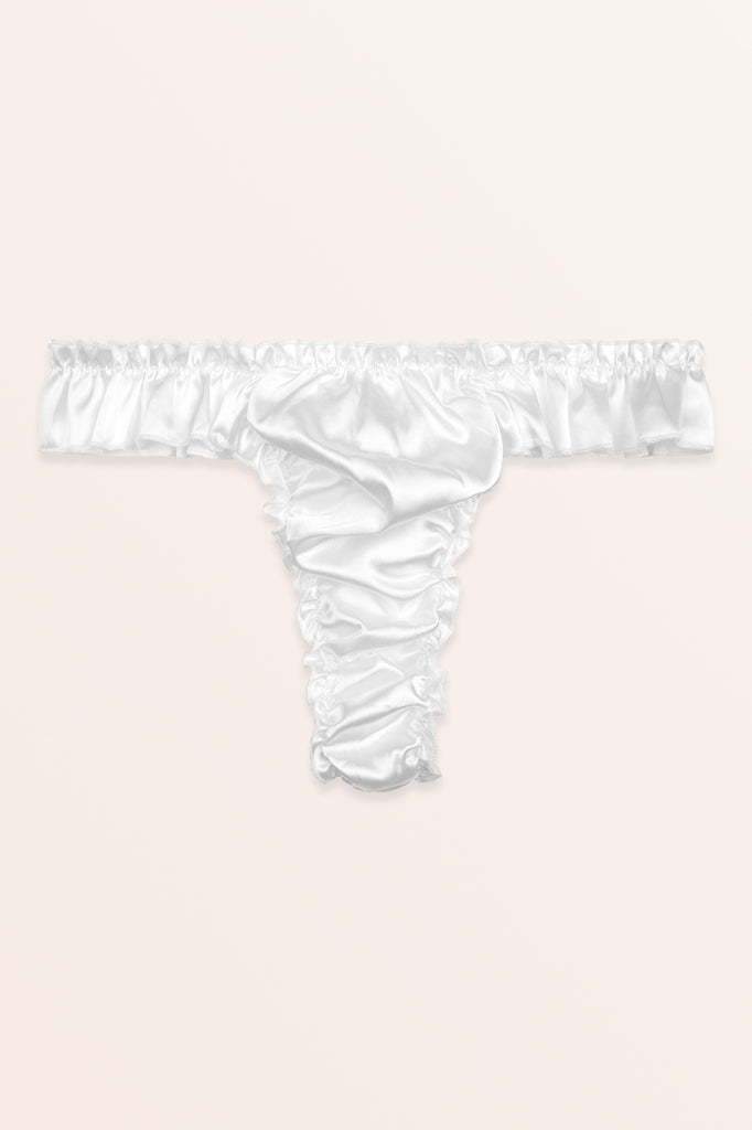 Deze string is laag uitgesneden en zit comfortabel op de heupen, zonder op te bollen of omhoog te kruipen. De ruchesrand voegt een vleugje speelse charme toe en vestigt de aandacht op jouw beste eigenschappen. Het minimalistische ontwerp van de string zorgt voor onbeperkte bewegingsvrijheid.