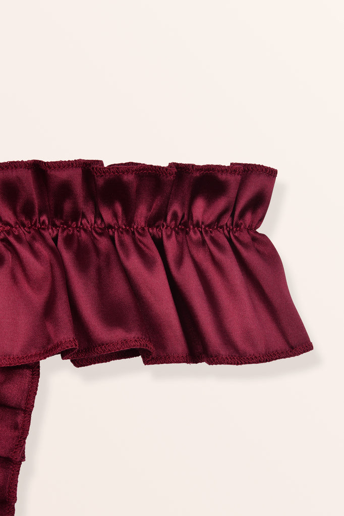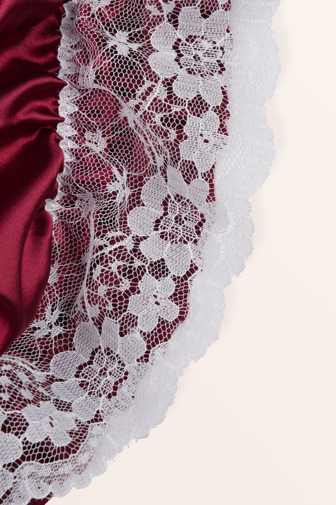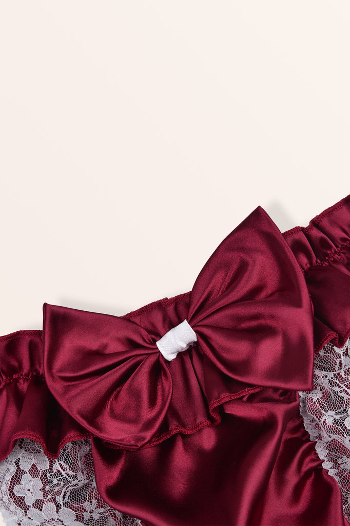 De ruches en kanten details voegen een vleugje vrouwelijkheid toe aan deze sissy-slip, terwijl het hoog uitgesneden ontwerp en de stringstijl zorgen voor een flatterende en comfortabele pasvorm. De satijnen strik zorgt voor een speels en charmant tintje, waardoor dit slipje perfect is voor speciale gelegenheden of voor dagelijks gebruik.