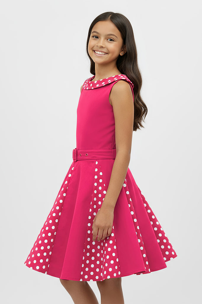 Deze populaire jurk in vintagestijl heeft een rok met stippenpaneel en een boothals, een uitlopende rok met volledige cirkel, een ritssluiting aan de achterkant en een bijpassende tailleriem voor een authentieke vintage look uit de jaren 50. Bovendien is de binnenkant van dit kledingstuk volledig gevoerd, waardoor je extra comfort hebt zonder dat dit ten koste gaat van de look.