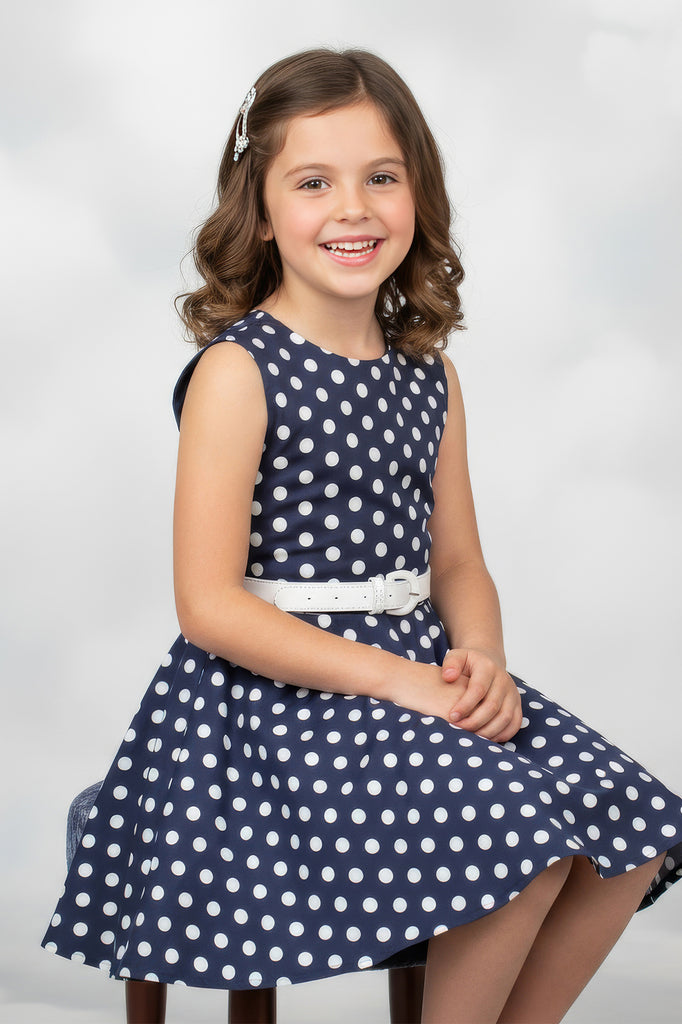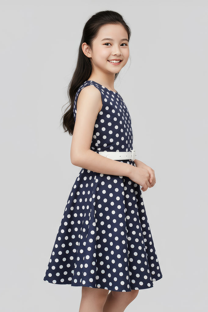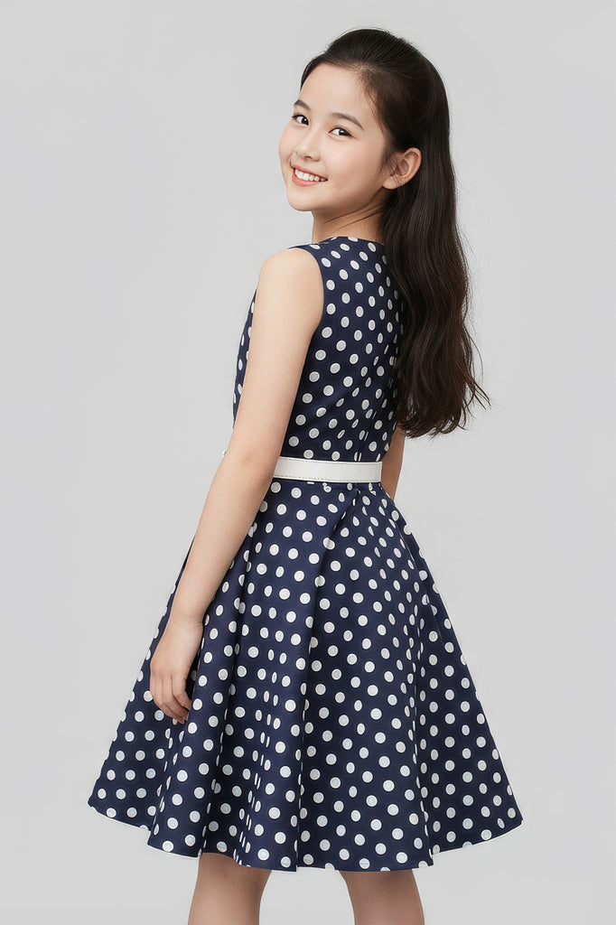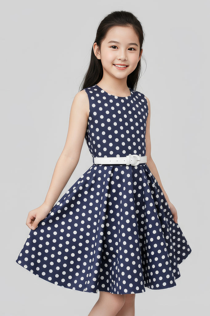 Deze populaire Audrey Hepburn-geïnspireerde jurk is nu verkrijgbaar voor meisjes! De jurk heeft een uitlopende rok met volledige cirkel, een ritssluiting aan de achterkant en een opvallende witte tailleriem voor een authentieke jaren 50 vintage look. Bovendien is de binnenkant van dit kledingstuk volledig gevoerd, waardoor je extra comfort hebt zonder dat dit ten koste gaat van de look voor je kinderen!