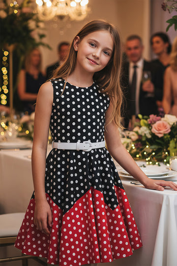 Denna populära vintageinspirerade klänning är nu tillgänglig för tjejer! Klänningen följer sin äldre syster och har en utsvängd kjol med helcirkel, dragkedja baktill och ett matchande midjebälte för en autentisk vintagelook från 1950-talet. Dessutom är insidan av detta plagg helfodrat vilket ger den extra komforten utan att kompromissa med utseendet.