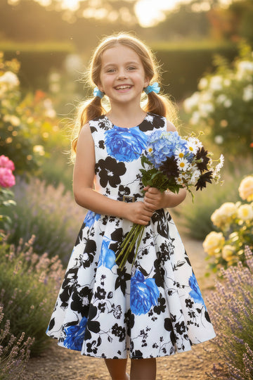 Denna populära blommiga Audrey Hepburn-inspirerade klänning är nu tillgänglig för tjejer! Klänningen följer sin äldre syster och har en utsvängd kjol med helcirkel, dragkedja baktill och ett matchande midjebälte för en autentisk vintagelook från 1950-talet. Dessutom är insidan av detta plagg helfodrat vilket ger dig den extra komforten utan att kompromissa med utseendet.