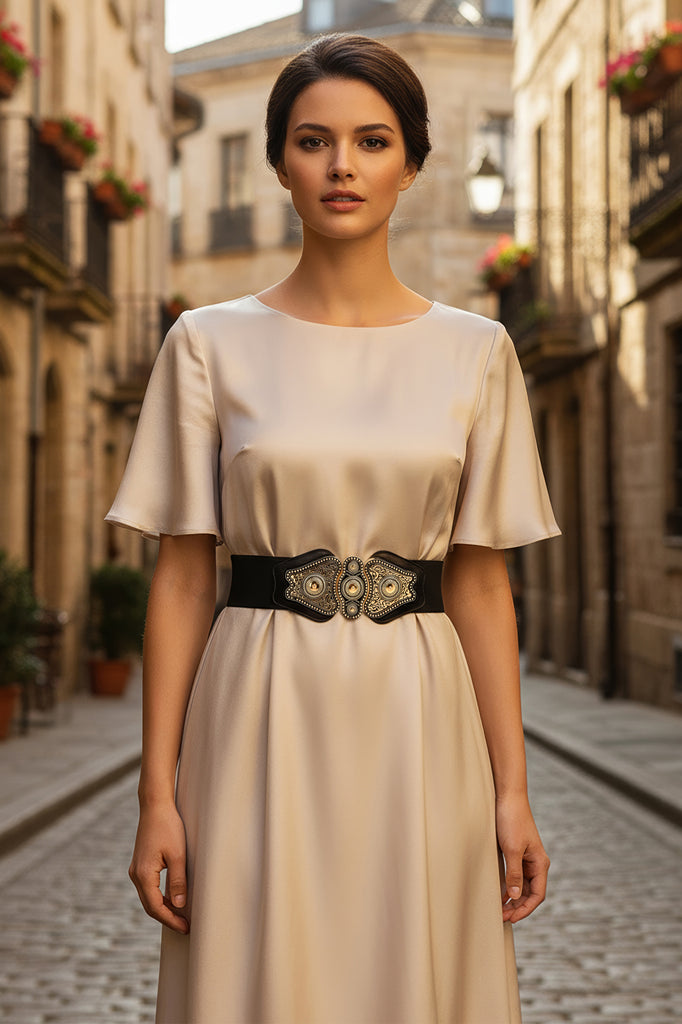 Ett brett retro korsettbälte med en stor rustik känsla, låsande lås! Eftersom större delen av bältet är stretchigt elastiskt, kommer det att anpassas till en mängd olika storlekar.