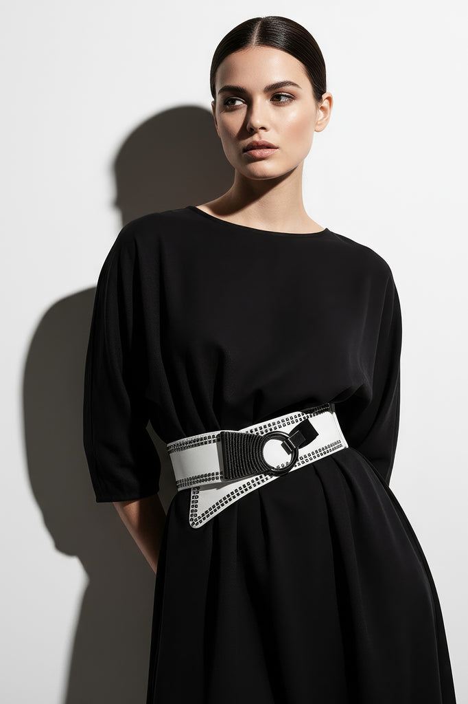 Ett brett korsettbälte i gotisk stil med en stor dekorativ metallkrokfäste som kan justeras för att vinkla bältet i olika positioner! Eftersom baksidan av bältet är elastiskt elastiskt, kan det anpassas till en mängd olika storlekar.